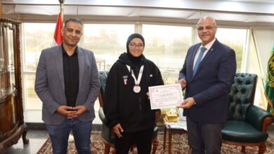 محافظ القليوبية يكرم جنة صليح لحصولها على ميدالية برونزية بدورة الألعاب الأفريقية للناشئين