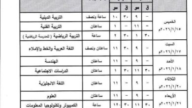 جدول امتحانات الشهادة الإعدادية للفصل الدراسي الأول 2026 في القليوبية